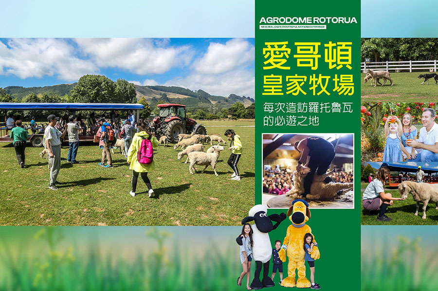 安排參加五星景點【傳統剪羊毛秀Farm Show】及【遊園車農莊活動Farm Tour】,搭上拖曳車遊園展開農莊活動,進到農場裡看看親手拿著飼料小綿羊會走過來跟您玩成一片,園區還有鹿和可愛的駝羊,農家會為您介紹戶外各種品種的牛羊,親手餵食一群可愛的羊咩咩、草泥馬(羊駝 Alpaca)、認識乳牛、肉牛、紅鹿,參觀奇異果園、您有機會品嚐到奇異果汁或農莊準備的特製飲料及試吃牧場內收集的純蜂蜜等系列活動。