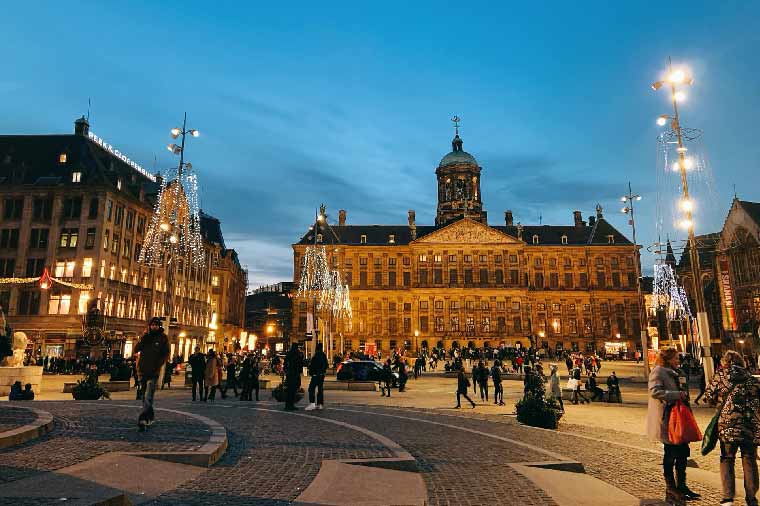 水壩廣場:12世紀時此地居民在阿姆斯特河上建造了一個小水壩(DAM)並聚集定居,後逐漸發展成為商業城市,阿姆斯特丹城市名稱因此而來。原水壩的位置就是現在的水壩廣場,為阿姆斯特丹中心最熱鬧繁華的地段。