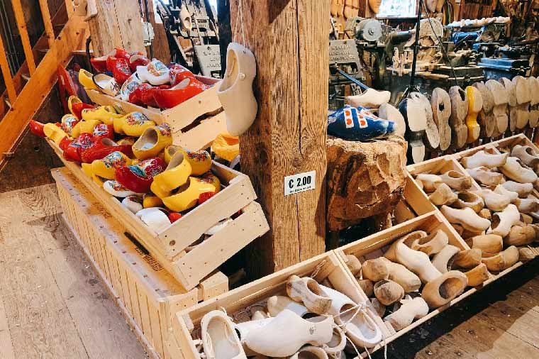 由白楊木挖空製成的荷蘭木靴、製作木鞋的表演,相當有趣。荷蘭人現在並不穿木鞋,除了在一些鄉下地區,農夫偶爾在田裡或是馬廄工作時還會穿上它。因為木鞋是很受歡迎的紀念品,所以這個古老的傳統木鞋製作可以繼續保留下去。