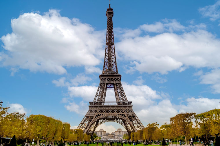 位於塞納河畔戰神廣場上,為了慶祝法國大革命100週年,採用250萬個鉚釘和1萬2000多個規格不一的零件,所打造而成的鐵製鏤空塔,替巴黎市容帶來了全新的活力,也在巴黎建築界注入變革的新血,時日至今,屹立不搖的它,成了巴黎最重要的靈魂地標。1991年,鐵塔連同巴黎塞納河沿岸整座被列入世界遺產。