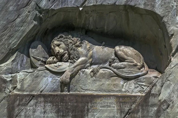垂死獅子石雕是紀念在1792年法國大革命中,暴民攻擊法國杜勒麗宮時,為保護法王路易十六及瑪麗王后而死的786名瑞士軍官和警衛所建的紀念碑。意在祈求世界和平,碑的下方有文字描述了此事件的經過。