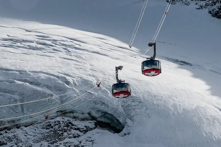 在這趟5分鐘的旋轉之旅行程中,纜車恰好旋轉一周。讓您更好、更全面地欣賞陡峭的崖壁,深邃的冰川裂縫和遠處層層疊疊的雪峰。