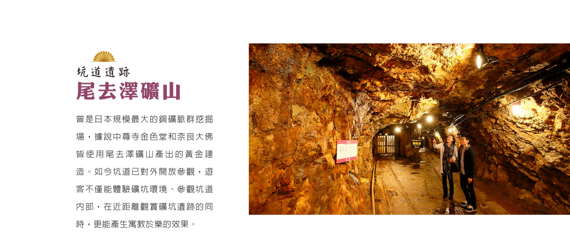 【尾去澤礦山】尾去澤礦山位於秋田縣鹿角市,是一座擁有約 1300 年歷史的日本最大規模銅礦遺蹟,被認定為「近代化產業遺產」。該礦山自奈良時代開採至 1978 年,現作為觀光景點開放,遊客可探索長達 1.7 公里的坑道,並欣賞 900 萬年前的地殼岩層,內部終年寒冷。