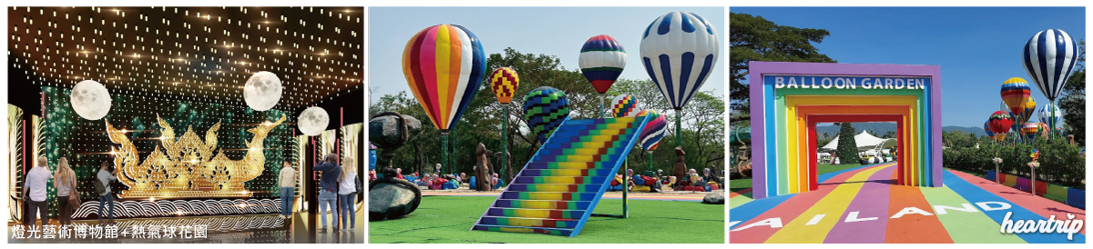 【燈光藝術博物館 熱氣球花園】芭達雅最新的創作綜合體,經典與現在技術的結合。美麗的藝術作品與使用獨特照明技術以及不同彥色和材料的畫廊融為一體。並將泰國獨特的景觀如節日、寺廟、文化等,都用閃爍的燈光再現,結合現代而獨特的3D設計,是博物館的獨特之處,設計了真實又虛擬的生動圖像,讓你沈浸在一個截然不同的泰國文化,博物館被還有價值百萬的古董車及色彩繽紛的熱氣球花園,是熱門的打卡景點。