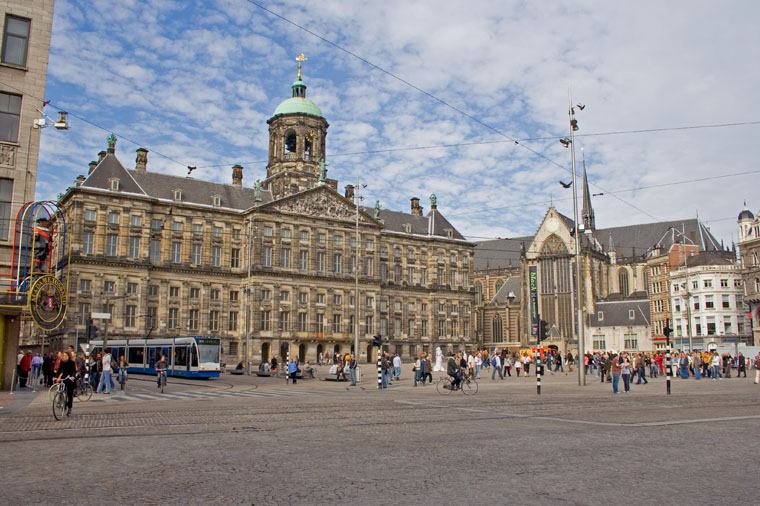 舊王宮:原為17世紀荷蘭黃金時代為了彰顯城市繁榮所建的市政廳,後因路易.拿破崙擔任荷蘭國王時指定為國王住所而改建得美輪美奐。其最大特色為使用13659根木材打樁,使建築物不會下沉,為當時的建築奇蹟。