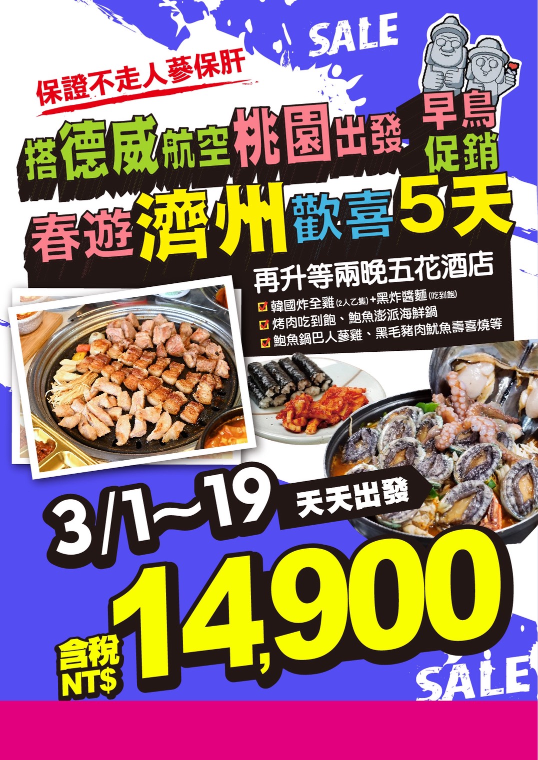 3. 本行程恕不接受韓籍旅客及其家屬參團;當地參團須提供來回電子機票,恕不接受於韓國打工度假及工作者參團。