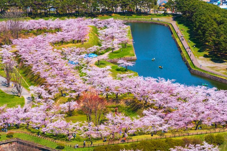 來到函館的地標-五稜郭公園,五稜郭以造型非常獨特的星狀碉堡聞名,明治維新時期支持幕府人士,抵抗天皇軍隊最後一站(箱館戰爭1868~1869年)的發生地點,因此在日本近代史中佔有重要地位。