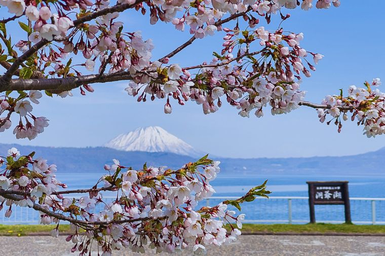 洞爺湖是由破火山口所形成的湖泊,湖面近乎完美圓形,中央矗立著四座因火山活動而隆起的火山穹丘,從高空俯瞰,彷彿綻放的花朵非常亮麗。