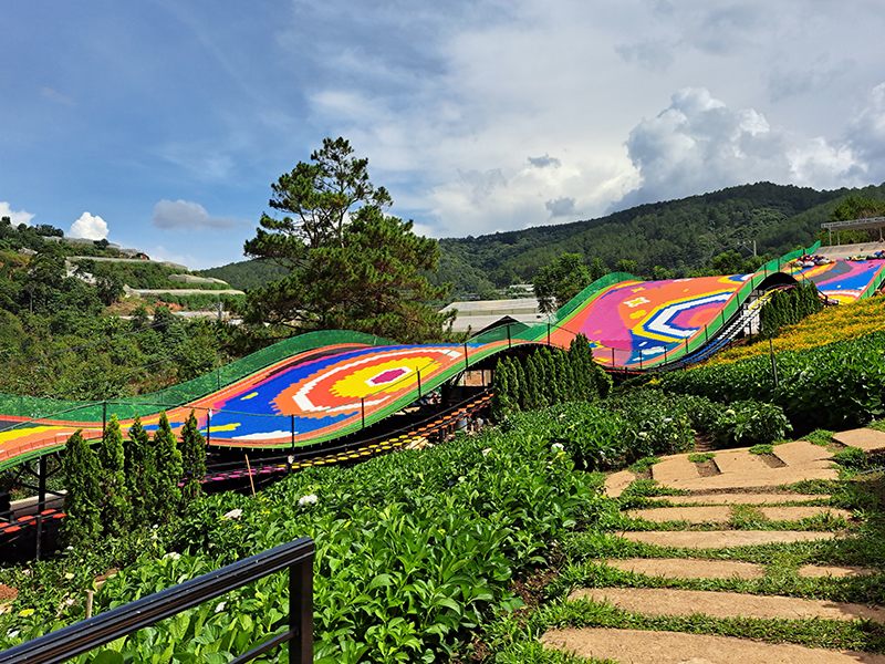 【達坦拉瀑布】距市區約十公里,大叻的週邊擁有著數個瀑布之一,再加上裡頭 附設步道、雲霄飛車等設施,使得他深受國外遊客喜愛。