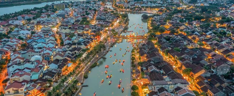 會安古城的建築型式,融合了越南文化及異國風格,到了夜晚幾乎家家戶戶都掛上燈龍,漫遊其中能感受他獨有的風情及魅力。1999年被聯合國教育科學文化組織列為世界遺產,並且是現今保存最好的15~19世紀東南亞經貿城市典範。