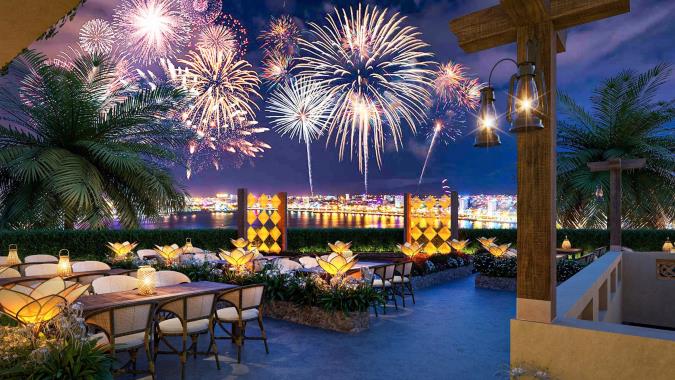 特別安排餐廳頂樓觀賞煙火並享用晚餐,讓賓客在舒適環境中迎接年度最盛大的夜晚。登上城市高空視角,遠離岸邊擁擠人潮,伴隨精緻料理與輕鬆氛圍,靜待煙火於夜空絢爛綻放,打造專屬尊榮時刻,成為旅程中最難忘的一夜。