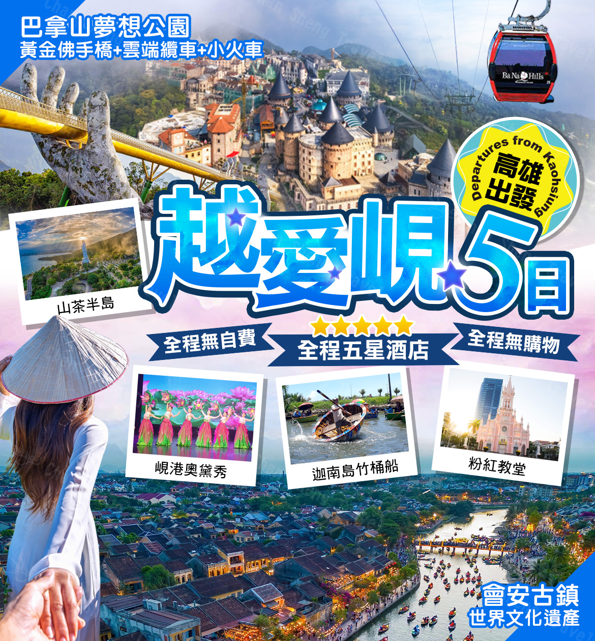 住宿:★★★★★PENINSULA HOTEL 或 AWAKEN DANANG HOTEL WYNDHAM DANANG GOLDEN BAY 或 GRAND MERCURE 或同級