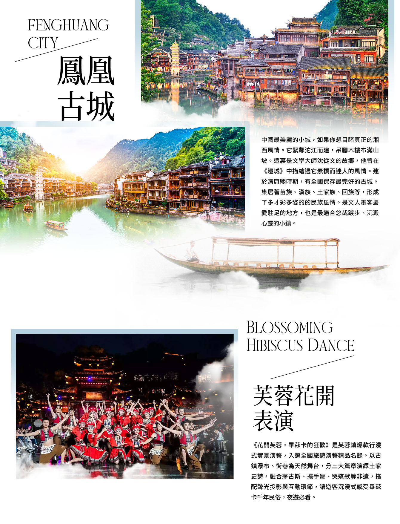 ※天門山纜車上下 穿山自動扶梯 ※芙蓉古鎮-含電瓶車 芙蓉花開表演