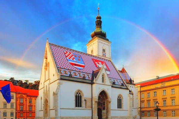 聖馬可教堂廣場前矗立著金色的聖母瑪麗亞雕像以及大主教宅邸,聖母瑪莉亞顯聖蹟的石門是進入上城區的主要入口,也是1731年的一場大火中唯一保留下來的,裡頭供奉著一幅聖母子畫像。穿過石門後,抵達以美麗的馬賽克拼貼畫為屋頂而聞名於世的聖馬可教堂,已成為克羅埃西亞最具代表性的色彩與圖案。
