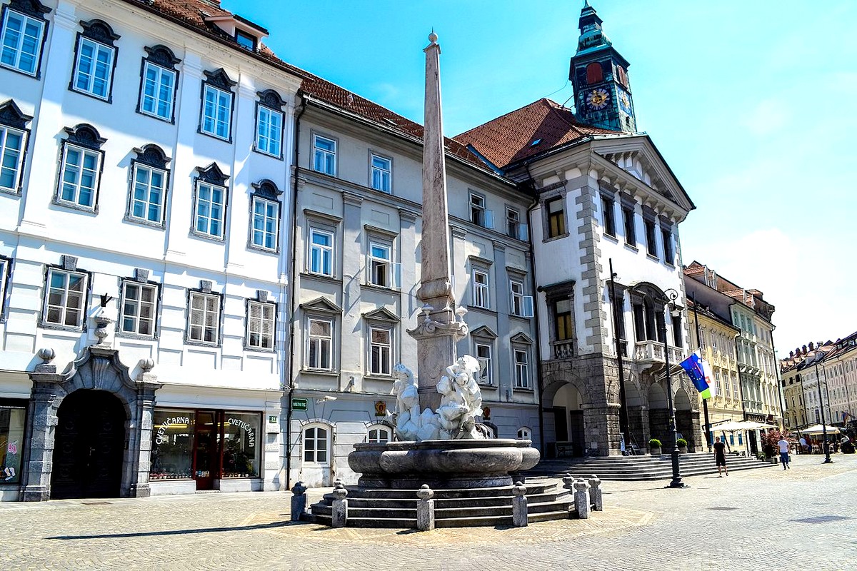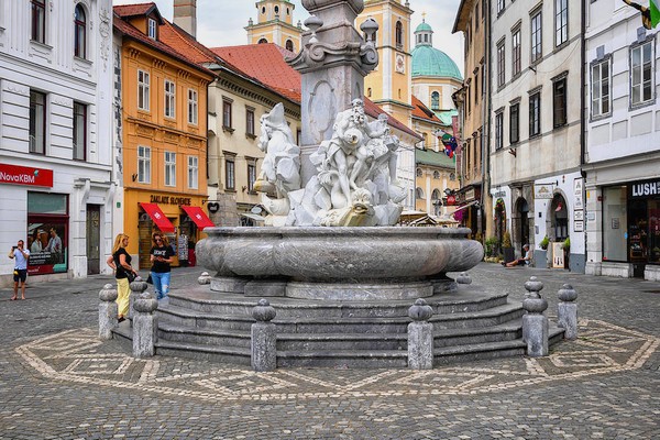 盧比安納的地標之一!出自18世紀義大利雕刻大師─羅巴之手,中央立著高10公尺的方尖碑,其下貝殼狀的水池,尤以池內三位男士雕像著稱,他們各自手拿著甕,甕口流出涓涓細水,分別象徵著斯洛國境內三條主要河流—Ljubljanica、Sava、Krka。