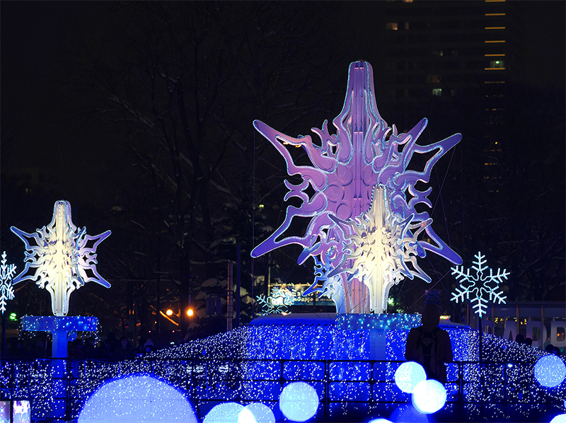 始於1981年是日本最早的燈樹節。52萬隻燈球華彩齊放,使冬日的札幌炫麗繽紛。在大通公園,以宇宙及耶誕節為寓意的象徵物等光之藝術輝煌璀璨。在札幌站前大道以及南一條大道,林蔭樹上的燈飾點綴著街區。觀賞燈樹的同時,也可順便去在大通公園2丁目舉行的“札幌慕尼黑聖誕市集”看看,它會讓耶誕節的氣氛更加濃烈。在耶誕節時期,亮燈時間延長到深夜24點,這裏也成為了很有人氣的情侶約會地點。