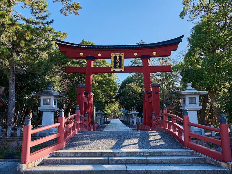 【氣比神宮】氣比神宮據傳建於702年,是北陸道總鎮守的越前國一之宮。腹地內的角鹿神社被視為「敦賀」地名的發源地,在當地有「阿氣神宮 」的暱稱。有環繞著本殿的東殿宮、總社宮、平殿宮、西殿宮四座社殿。從本殿往參道方向連接了內拜殿與外拜殿。聳立在參道上的朱紅色大鳥居,與奈良春日大社、廣島嚴島神社的大鳥居並列為「日本三大鳥居」之一。社殿幾乎全為後世重建之物,大鳥居在第二次世界大戰的空襲中倖免,指定為國家重要文化財。