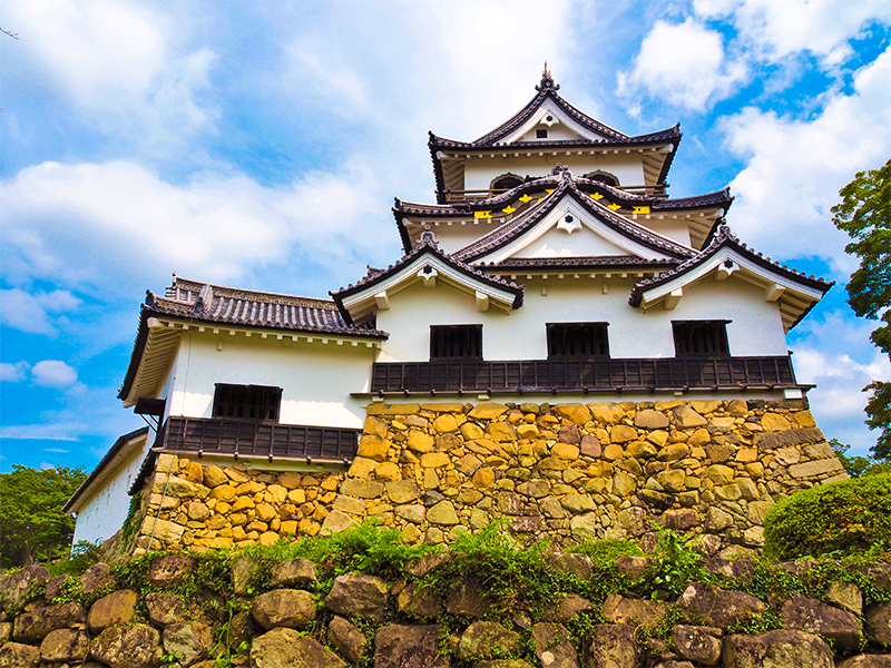 【彥根城】被指定為日本國寶,位列天下名城之一,其耗時約20年,於元和8年(1622年)建成。月光下的彥根城美麗動人,被譽為琵琶湖八景之一。這裡曾經是鄰接琵琶湖和內湖而建的『水城』,護城河當時還被用作往城下町運送物資的水路。船町地名及護城河邊殘留的碼頭遺跡、船夫等的住宅遺跡等,可一窺當時風貌。如今還有很多屋形船穿梭往來,熱鬧異常,護城河已成為市民休息景觀之一部分。