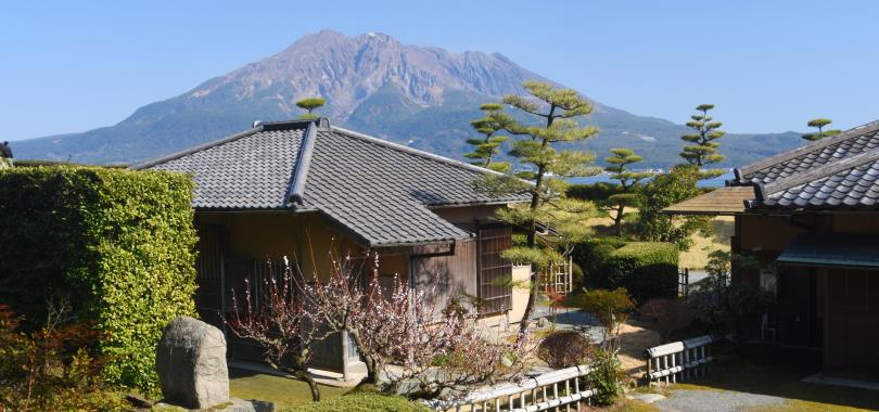 利用借景的手法在園內也可欣賞到矗立於錦江灣上雄偉美麗的櫻島景色,當時遠嫁德川將軍家的篤姬也實際在這美麗的庭園生活過。以櫻島為假山,錦江灣為池巧思設計,庭園景色壯麗讓人留連忘返,為鹿兒島最具代表的日式借景庭園。
