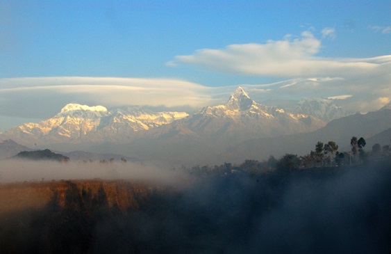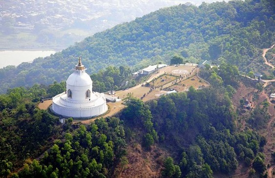 欣賞夕陽美景,順著古道沿途可欣賞安普蘇娜群峰及魚尾峰的雄姿;喜馬拉雅山山裙帶都呈現在您的眼前。這座白色的佛塔由尼泊爾、泰國、斯里蘭卡與日本四國合資興建,佛塔的四面各有一座金色佛像。俯瞰山下的費娃湖秀美風光,湖區密密麻麻的房舍,完整地映入眼簾,而當天氣晴朗時,還能欣賞到遠方的雪山景致,是遠眺雪山日落的好景點。