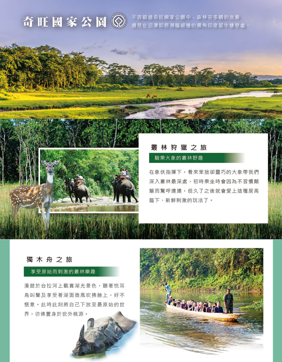 【企劃小語】特別安排搭乘國內飛機(加德滿都〜奇旺國家公園);節省搭車時間約6小時。