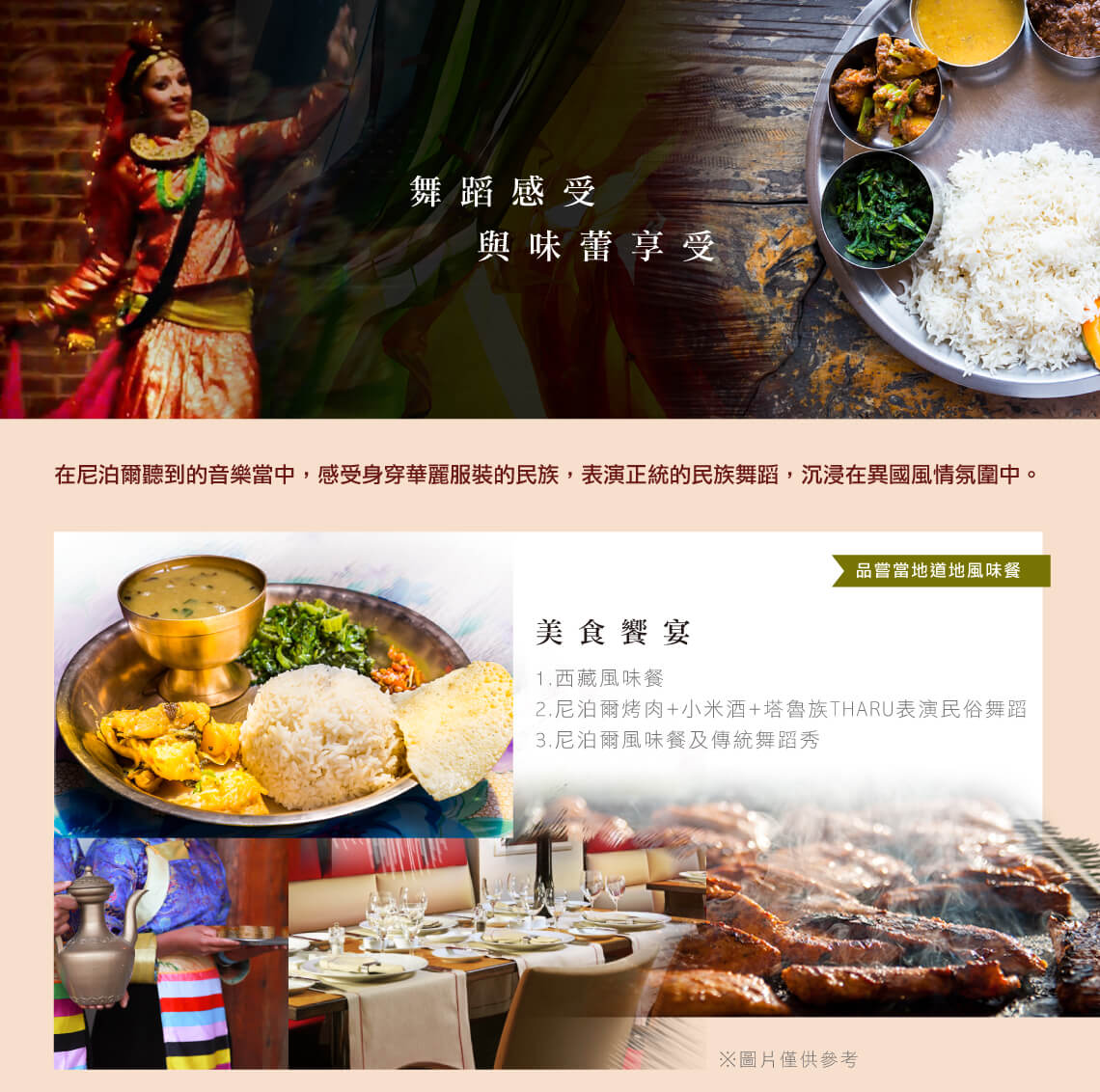 晚餐:尼泊爾風味餐+烤肉+卡拉OK+無限暢飲小米酒+塔魯族THARU表演民俗舞蹈