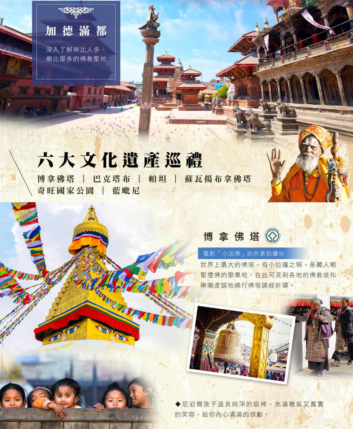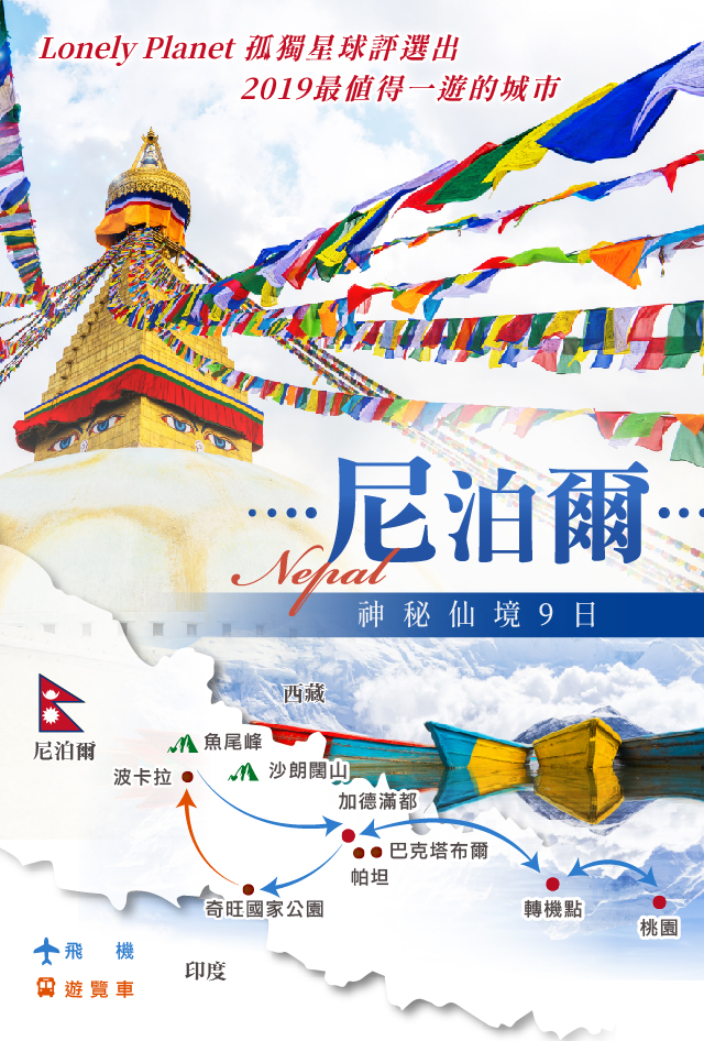 【企劃小語】特別安排搭乘國內飛機(波卡拉〜加德滿都);節省搭車時間約7小時。
