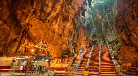 洞深十哩的巨大鐘乳石岩洞,其一直是吉隆坡郊區最吸引遊客的觀光點。登上黑風洞,得先攀登272層階梯,洞內有印度神殿,是大寶森節活動的重鎮,還有一個高達100公尺的寺廟透天洞,偶有陽光斜線而入,莊嚴氣氛,令您目瞪口呆。