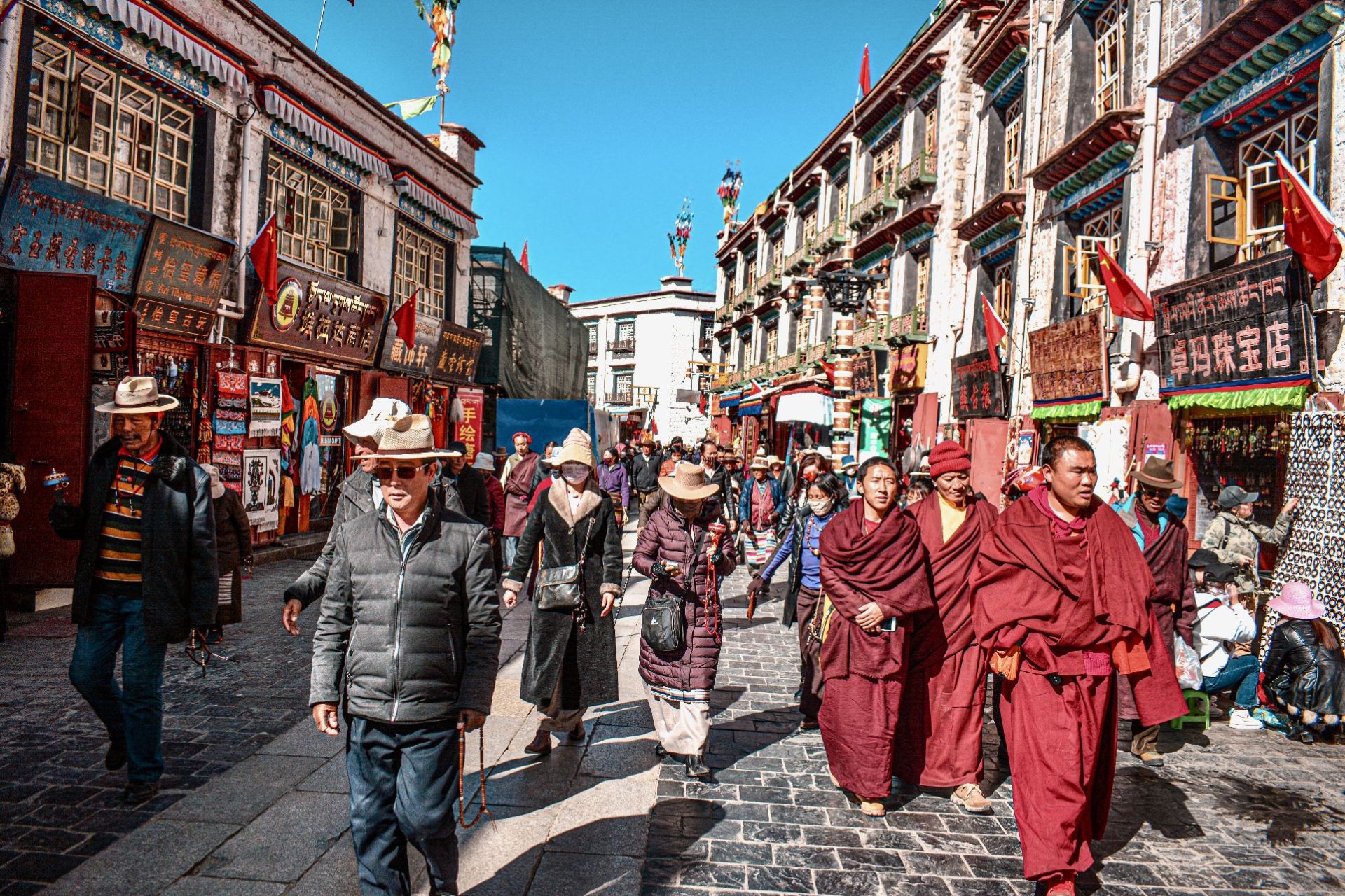 【八廓街】(海拔3550米)八廓街是圍繞著大昭寺中心環繞的一條古老街道,它不僅是一條熱鬧的商業街,更是藏族信徒轉經的必經之路(朝聖路線)。這條街道完整地保留了拉薩古城的傳統風貌和生活氣息,沿街盡是古老的藏式建築。街道兩旁開設了數不清的商店和攤位,出售琳瑯滿目的藏族工藝品、宗教用品、服飾、以及來自尼泊爾和印度的商品。漫步於八廓街,您可以觀察到虔誠的信徒、繁忙的商販,感受濃郁的藏族文化和最真實的市井生活,是體驗西藏西域風情的最佳場所。