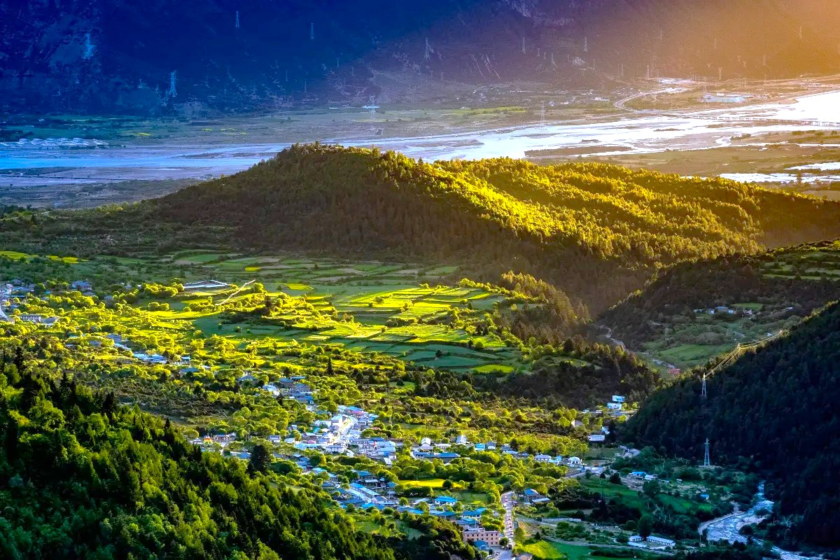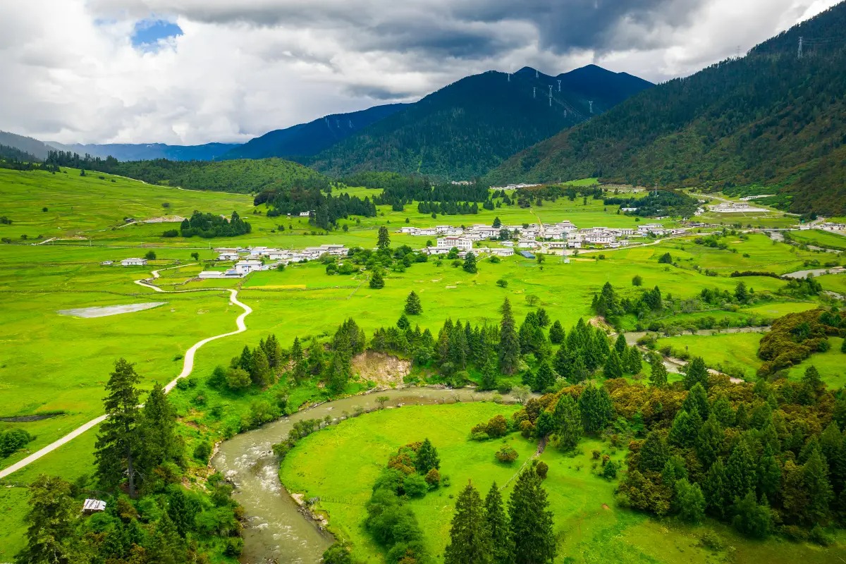 【魯朗林海】(海拔3200米)魯朗林海因廣闊的森林與高山牧場而聞名,被稱為「西藏的小瑞士」。林海以冷杉、雲杉為主,四季景觀各具特色:春有杜鵑綻放,夏季草原翠綠,秋天黃葉滿谷,冬季雪景靜謐。山谷間點綴藏式村落與牧場,牛羊成群,展現高原生活的天然畫卷。視野廣闊,空氣清新,是川藏線最適合放慢腳步欣賞自然的地方。