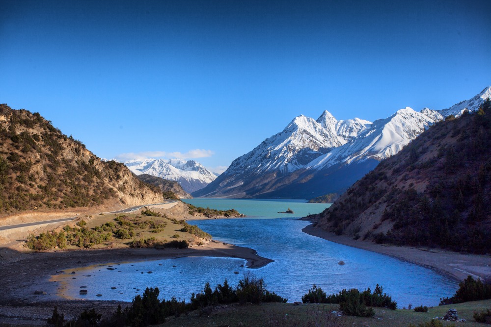 【古鄉湖】(海拔2600米)古鄉湖位於波密縣,是沿川藏線最受歡迎的天然湖泊之一。湖面開闊透亮,長年呈現清澈的高原藍色,周圍雪峰林立、山色層層堆疊。春季桃花盛開,粉色花林與湖水相映,是波密桃花季最經典的取景地。湖畔草地廣闊,常見牦牛悠遊,讓景象更具生活氣息。晨昏光影變化明顯,湖面倒影也隨之呈現不同層次,是攝影愛好者必訪之處。