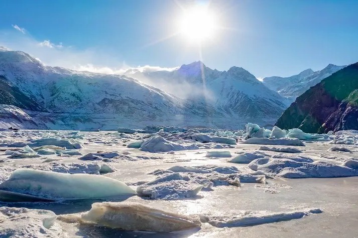 【來古冰川含景區車】(海拔4100米)來古冰川是世界三大海洋性冰川之一,由多條冰川匯流而成,冰舌壯闊,冰裂與冰塔林景象震撼。冰川融水注入湖中,形成多個顏色不同的冰湖,因地質礦物差異呈現藍、綠、灰等色澤。湖面常漂浮巨型冰塊,在陽光照射下如瑩白水晶般閃亮。來古村坐落於湖畔,被稱為「隱藏的世外桃源」,村落仍保留傳統藏式生活方式與原始景觀。站在觀景平台可同時眺望雪峰、冰湖與冰川前緣,是川藏線上最震撼的自然景觀之一。