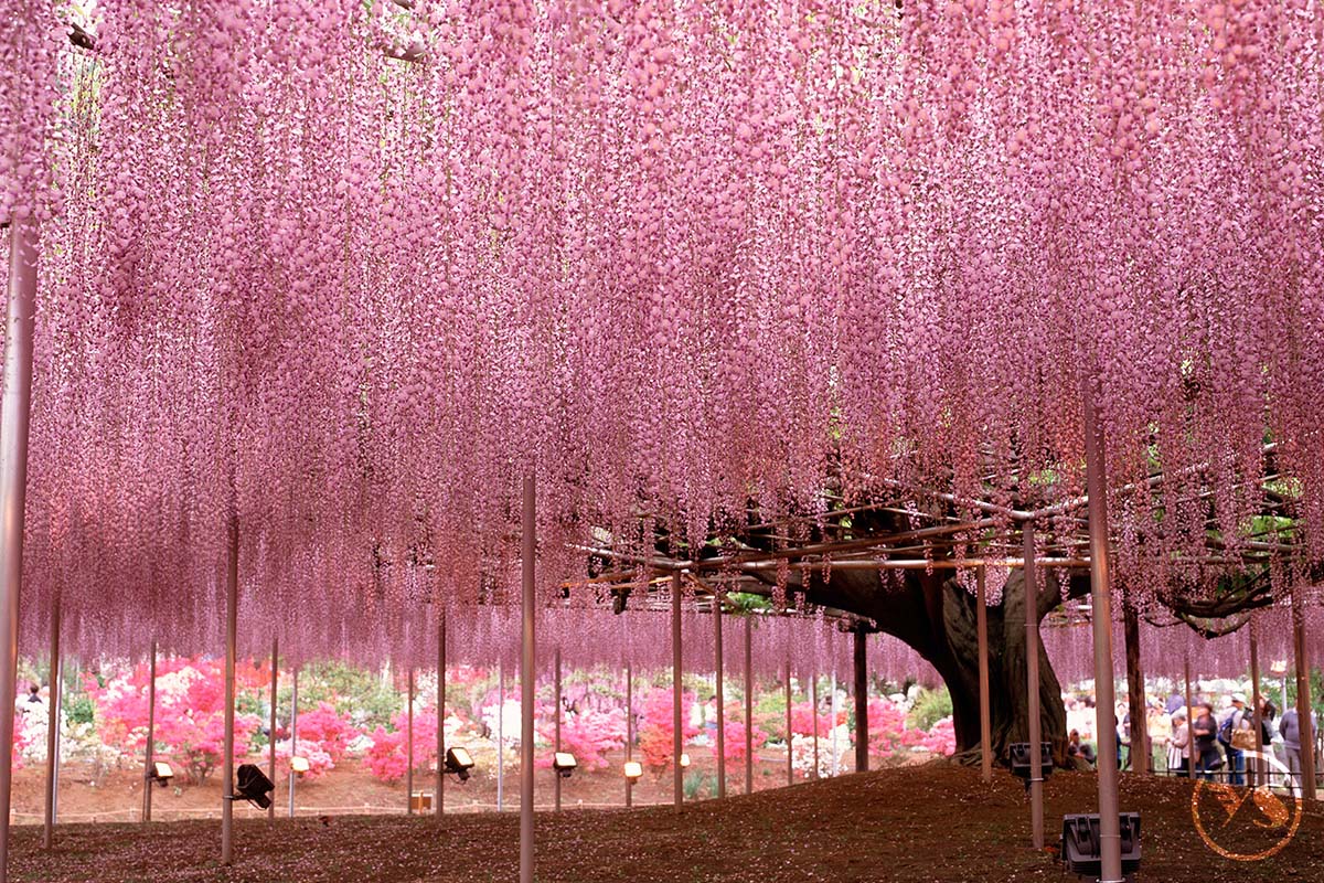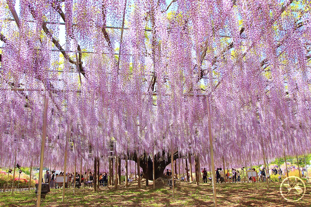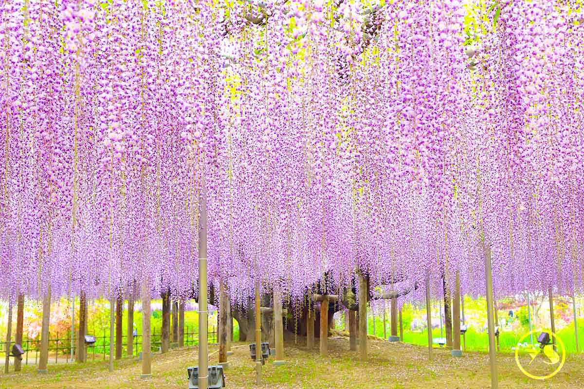 【足利紫藤花卉公園】位於栃木縣足利市,是日本極具代表性的花卉主題公園之一。園內栽植多株樹齡逾百年的紫藤花樹,每逢春季花期,紫、白、粉紅等色彩的花穗如瀑布般垂落,形成壯麗而夢幻的花之景觀,吸引無數旅人前來欣賞。公園依花期規劃完善動線,讓旅客可悠閒漫步於花棚與花徑之間,細細感受自然之美。夜間搭配燈光演出時,柔和光影映襯盛開花朵,呈現出與白天截然不同的浪漫氛圍。