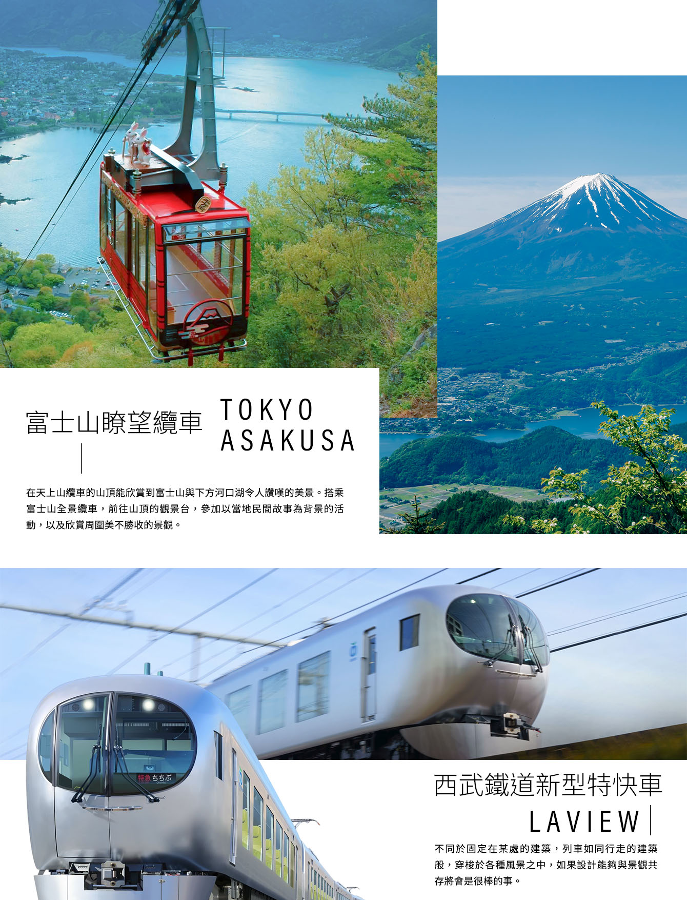 【西武鐵道新型特快車-Laview】不同於固定在某處的建築,列車如同行走的建築般,穿梭於各種風景之中,如果設計能夠與景觀共存將會是很棒的事。