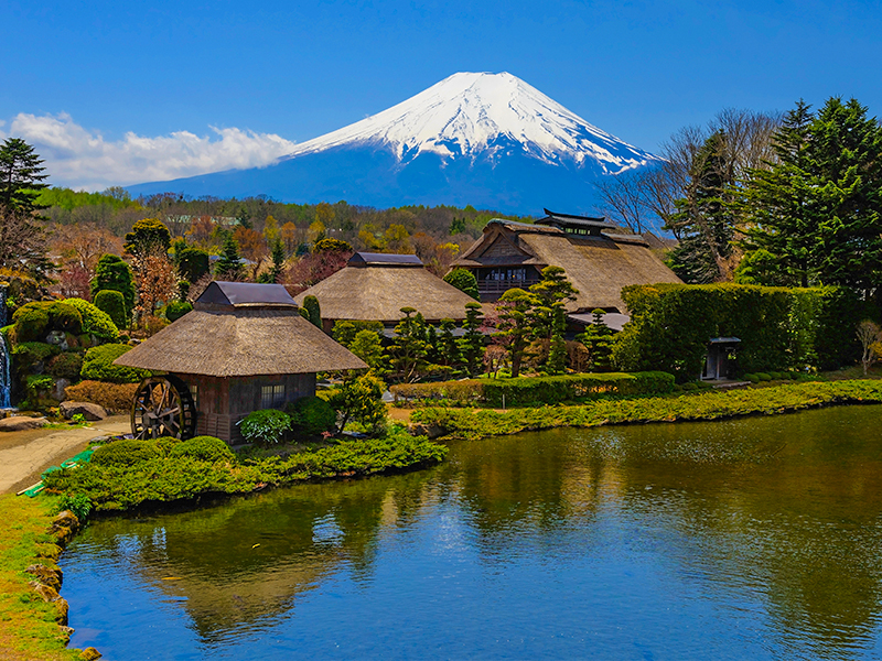 【忍野八海】是位於山梨縣忍野村的湧泉群,富士山融化的雪水經過80年的過濾而湧出的泉水。為國家指定天然記念物、名水百選、新富岳百景之一。西元800-802年間富士山發生延曆噴發,宇津湖分為山中湖與忍野湖。後來忍野湖干竭,變為盆地,但湧水口澤變為泉水,即今日的忍野八海。