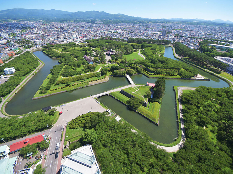 【五稜郭公園】來到函館的地標-五稜郭公園,五稜郭以造型非常獨特的星狀碉堡聞名,明治維新時期支持幕府人士,抵抗天皇軍隊最後一站(箱館戰爭1868~1869年)的發生地點,因此在日本近代史中佔有重要地位。