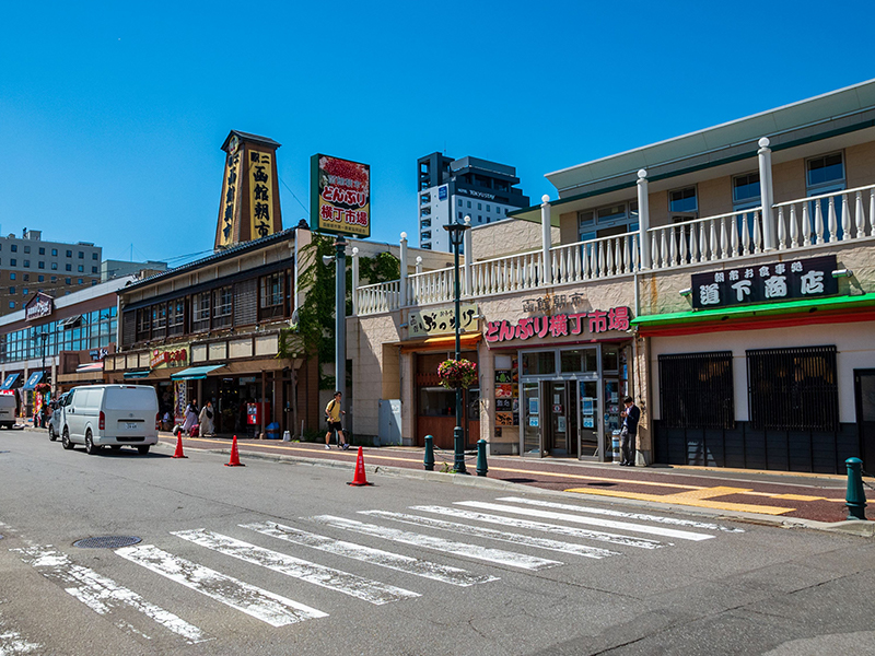 【函館朝市】來到北海道就不能錯過這裡盛產的各式海鮮,函館朝市位於JR函館站西口不遠處,市場一帶集中了大小400多家水產店,形成了一個獨據特色的大型市場。營業時間一般從上午8:00營業至中午1:00左右,市場裏嘈嘈嚷嚷,叫賣聲不絕於耳,運貨車和購物客令狹窄的通道顯得熱鬧擁擠,充滿市井氣息。