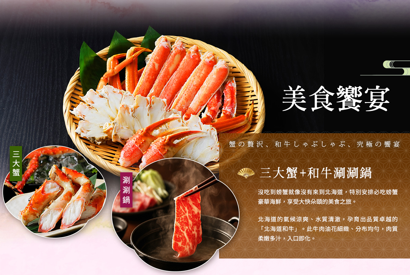 晚餐:三大蟹+和牛涮涮鍋吃到飽+水酒無限暢飲(80分鐘)