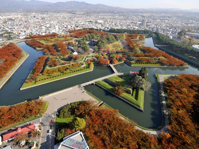 【五稜郭公園】來到函館的地標-五稜郭公園,五稜郭以造型非常獨特的星狀碉堡聞名,明治維新時期支持幕府人士,抵抗天皇軍隊最後一站(箱館戰爭1868~1869年)的發生地點,因此在日本近代史中佔有重要地位。