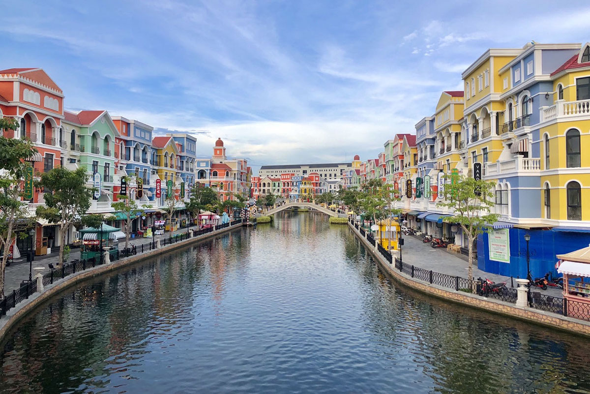【富國大世界不夜城Grand World】:越南最大的不夜城,由越南最大Vingroup集團打造,佔地廣達85公頃,從集結餐飲、購物、大型水舞秀等娛樂,並將園區打造成歐風小鎮,還有運河流經園區內,被許多旅客暱稱為越南版威尼斯,在這裡可沿著貢多拉運河漫步其中,欣賞兩岸繽紛色彩建築,最後來到海上廣場遠眺古老威尼斯鐘樓,讓人彷彿一秒置身義大利。【當代藝術城市公園、竹之傳奇、浪漫貢多拉Gondola水上計程車(敬請自費)、威尼斯的顏色Colors of Venice湖上夜晚燈光秀。