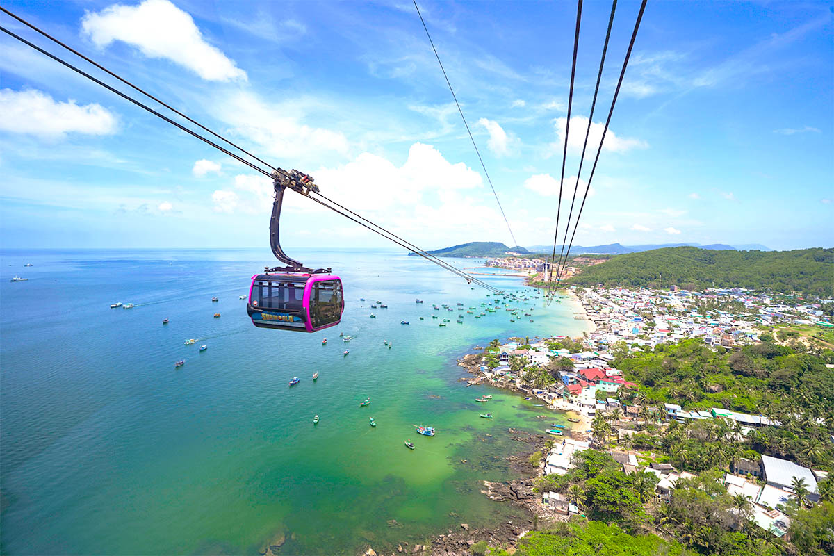 【360度全景跨海纜車】:為世界上最長的海上纜車。由起始點到終點站約15分鐘。該系統有69輛車廂,每車廂最多乘載30名乘客。纜車之旅中享受360度全開視野的高空巡航,給予遊客一個史無前例體驗,空中看到富國島以最新鮮自然的色彩。