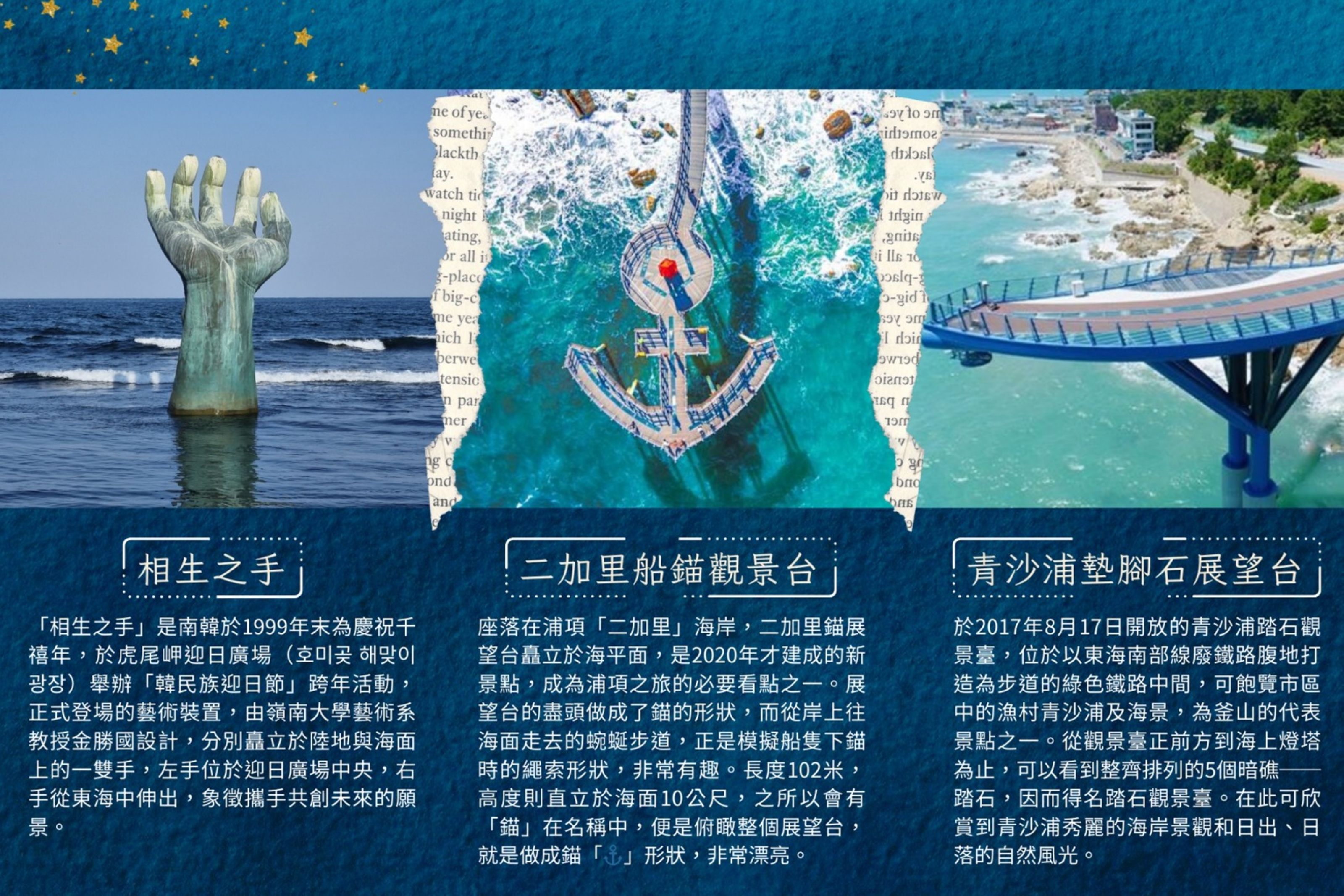 浦項最新打卡熱門景點➠砂防紀念公園(位於山頂的漁船)➠二加里船錨景觀台➠行走的雲霄飛車~space walk雲霄天空步道➠《綜藝玩很大》拍攝地~竹島市場美食大探索➠韓劇《 山茶花開時》拍攝地~九龍浦近代文化歷史街~九龍浦日本人家屋➠《綜藝玩很大》拍攝地~虎尾燈塔+相生之手➠ The Bay 101欣賞釜山絕美夜景