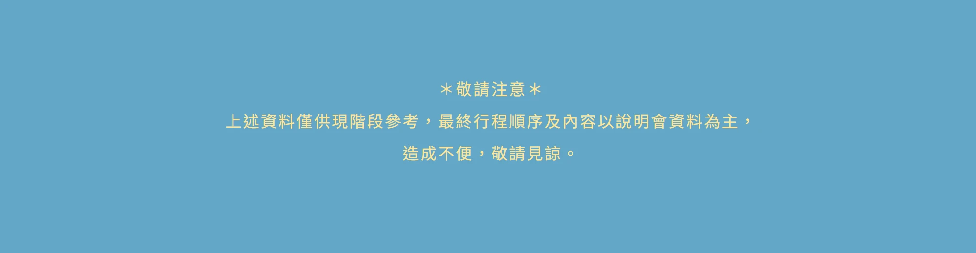 18.本行程視飯店及航空公司之確認及當地節慶保有調整之權利,若遇商展或節慶,將會尋找同等級替代飯店及住宿點,敬請包涵,行程/航班/飯店/餐食以「行前說明會」書冊所列資料為準。