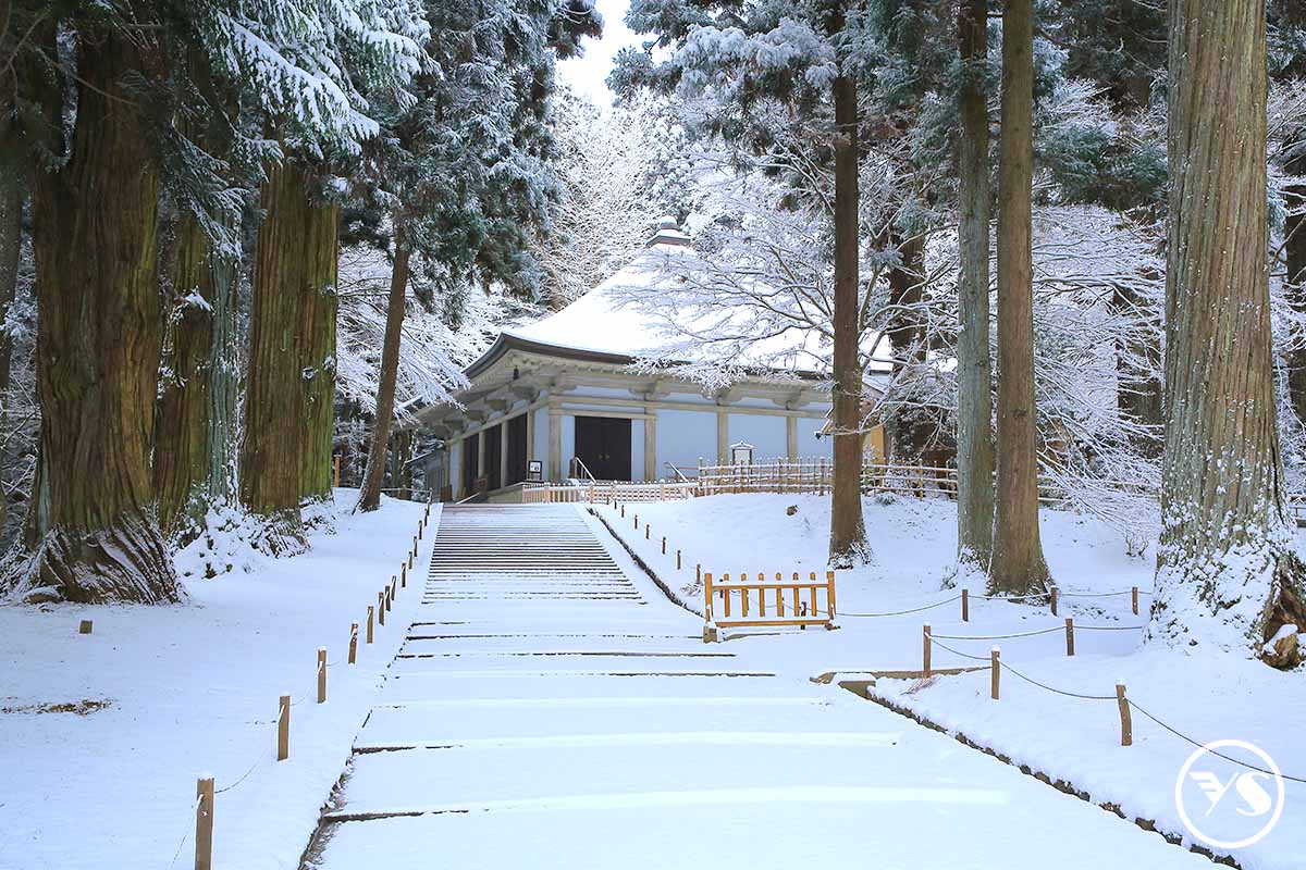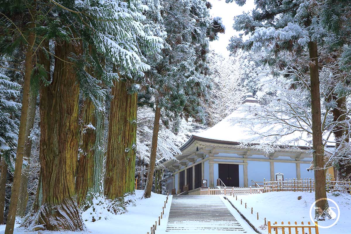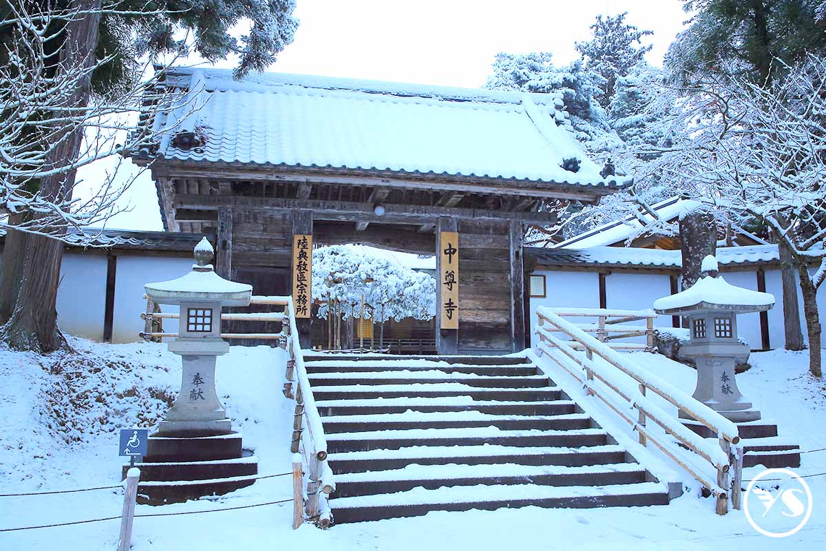 【中尊寺】市內典雅的東北第一大名寺,開創於西元 850年,在1105年由藤原第一代的清衡親手重建;當時的平泉有 21所堂宇和300所以上的佛教設施,是可與京相匹敵的文化都市,在最盛時期約有40個燈塔。