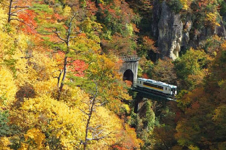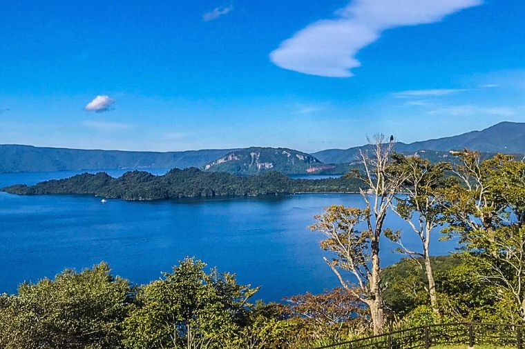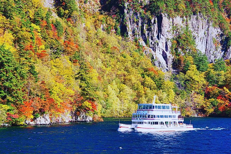 跨秋田和青森兩縣之火山湖,海拔400公尺,周圍長約46.2公里,典型的二重式火山湖,底部深達326.8公尺,在深度上為日本第三大湖,為日本東北地區別具代表性的著名景點。十和田山上的金黃櫸木與赤紅楓葉間的美麗對比,倒映在湖面上形成一幅色彩斑斕的風景畫。無論是由岸觀湖或由湖觀岸,都是令人驚豔的秋日美景。