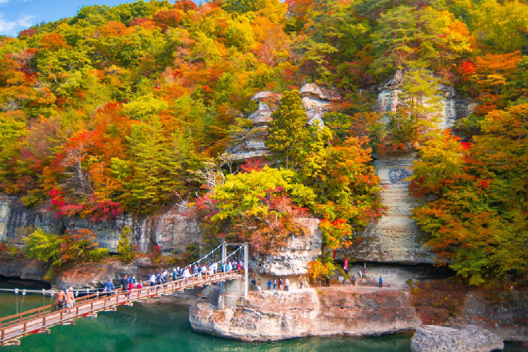 因大谷川侵蝕形成的大峽谷,位於鳴子溫泉和中山平溫泉之間,全長約為4.5公里的溪谷。懸崖延綿約100公尺,豐富的奇形岩石與樹木形成雄偉景觀,更獲指定為宮城縣名勝。