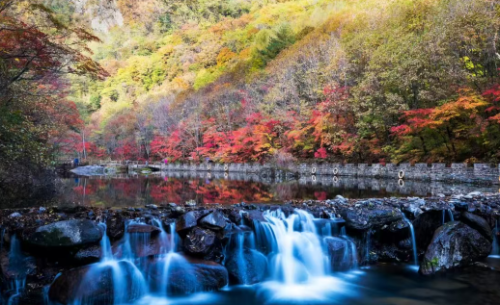 楓林映清泉,綠樹掩幽谷,遼寧東部山區桓仁滿族自治縣南部有一處集 森林、溪水、氧吧、楓葉的休閒度假旅遊景區——楓林谷景區。景區生態環境優良,森林覆蓋率達98.75%,主要樹種有柞樹、楓樹、胡桃楸等,是典型的東北長白山脈植物群落,具有子孫滿堂、盤龍壁、倒生等生態奇觀,楓林谷素有「中國楓葉之最」、「中國第五大賞楓勝地」美稱。